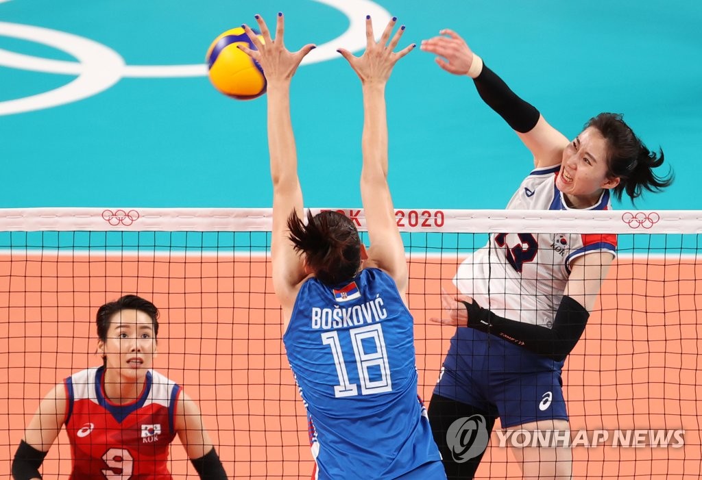 TOKYO, Aug. 8 (Yonhap) -- South Korea lost to Serbia in the bronze medal match of the Tokyo Olympic women's volleyball tournament Sunday, as the unlikely storybook run to the final four came to a heartbreaking end.