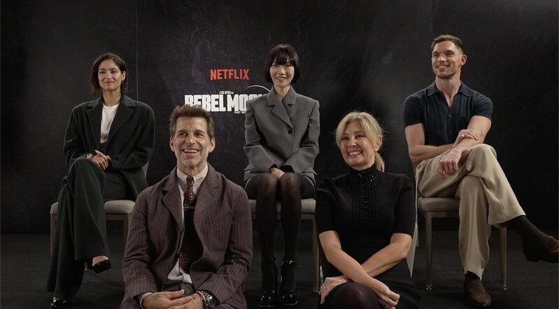 | ▲ '레벨 문' 화상 간담회. 앞줄 왼쪽이 잭 스나이더 감독. 뒷줄 가운데가 배두나 [넷플릭스 제공. 재판매 및 DB 금지] |