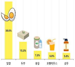 달걀(50.6%)의 가격 상승률이 가장 높았고, 두부(15.3%), 분유(7.3%), 오렌지주스(6.0%), 샴푸(5.6%) 등이 뒤를 이었다.