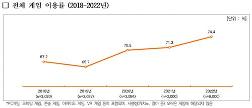 | ▲ 전체 게임 이용률(2018~2022) [한국콘텐츠진흥원 제공] |