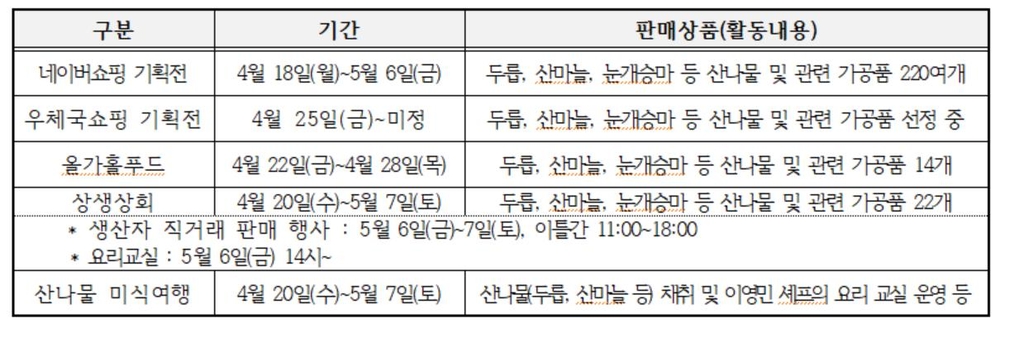 | ▲ 산나물 판매 기획전 및 산나물 미식여행 개요 [산림청 제공. 재판매 및 DB 금지] |