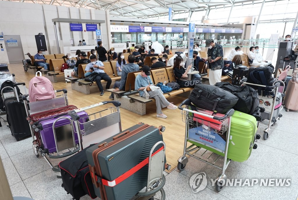 | ▲ People check in for flights to Shanghai at Terminal 1 of Incheon International Airport, west of Seoul, on June 3, 2022. (Yonhap) |