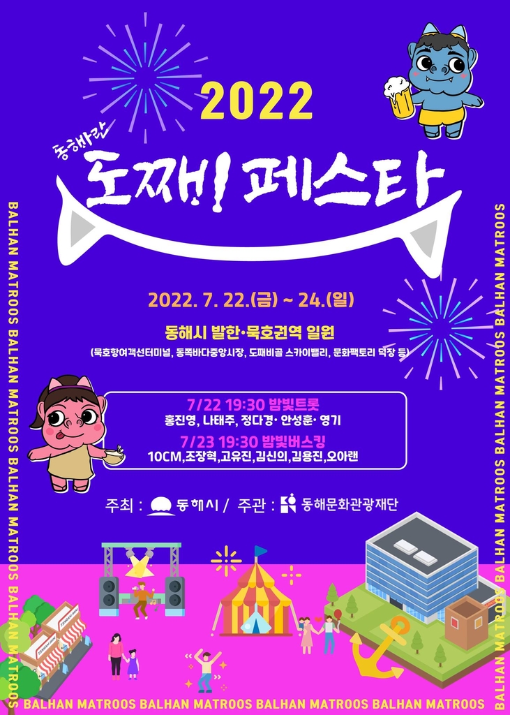 (동해=연합뉴스) 유형재 기자 = 강원 동해문화관광재단은 22∼24일 발한·묵호권역 일원에서 '2022 동해바란 도째비 페스타'를 개최한다고 18일 밝혔다.