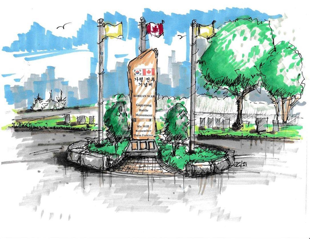 | ▲ 2022년 6월 15일 캐나다 나이아가라시에 제막될 가평전투 기념비 조감도 [재향군인회 캐나다 동부지회 제공] |