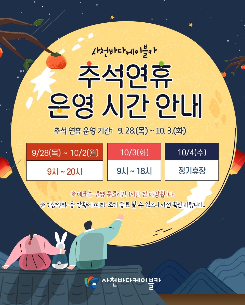 | ▲ 사천케이블카 추석 연휴 운영 시간 [경남 사천시 제공. 재판매 및 DB 금지] |