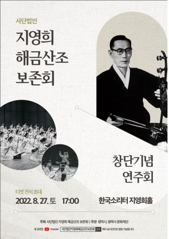 ▲ 지영희 해금산조 보존회 창단기념 연주회 = 사단법인 지영희 해금산조 보존회가 오는 27일 경기도 평택 한국소리터 지영희홀에서 창단기념 연주회를 연다.