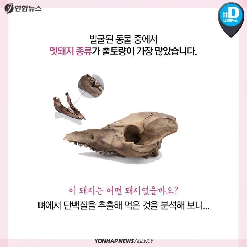 발굴된 동물 중에서 멧돼지 종류가 출토량이 가장 많았습니다.