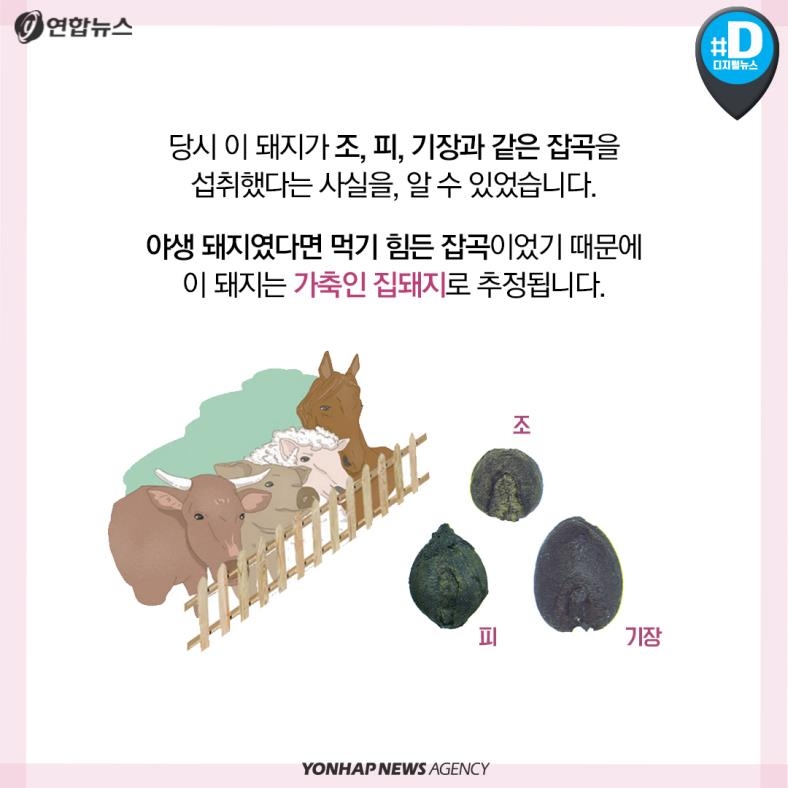 당시 이 돼지가 조, 피, 수수와 같은 잡곡을 섭취했다는 사실을 알 수 있었습니다.