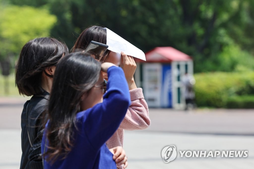 | ▲ 강한 햇볕 (서울=연합뉴스) 신현우 기자 = 전국 대부분 지역 한낮 기온이 25도를 넘어선 15일 오후 서울 광진구 어린이대공원에서 한 시민이 종이로 햇빛을 가리며 이동하고 있다. 2023.5.15 nowwego@yna.co.kr |