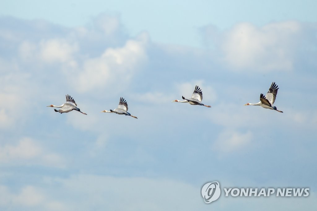 | ▲ 겨울나기 위해 철원 찾은 재두루미 (철원=연합뉴스) 지난 8일 오후 강원 철원군 민통선 마을 위를 천연기념물이자 멸종위기종인 재두루미 무리가 날고 있다. 2022.10.9 [권영덕 작가 제공. 재판매 및 DB 금지] yangdoo@yna.co.kr |