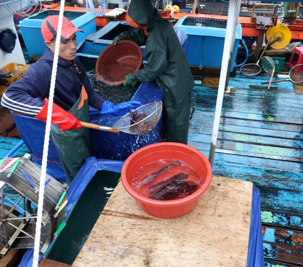 최근 수협 위판가격은 산 오징어의 경우 마리당 6천원, 선어는 1박스(20마리가량)당 6만원대다.