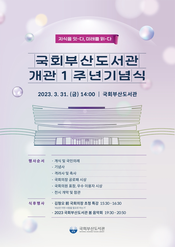 이명우 국회도서관장은 "국회부산도서관은 앞으로도 시민을 위한 복합문화공간으로써 지역의 지식 복지와 균형 발전을 위해 계속 노력해 나갈 것"이라고 말했다.