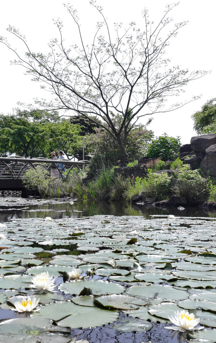 Water lily flowers are seen on a pond at a village in the city of Jeju on South Korea's largest island of the same name on May 19, 2025. (Yonhap)