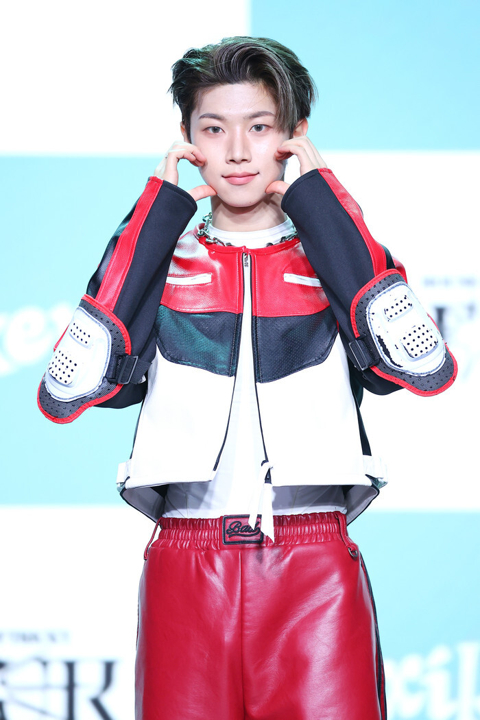 Hyunwoo, a member of South Korean boy group Xikers, poses for a photo during a showcase for the group's fifth mini album "House of Tricky: Spur" in Seoul on April 3, 2025. (Yonhap)