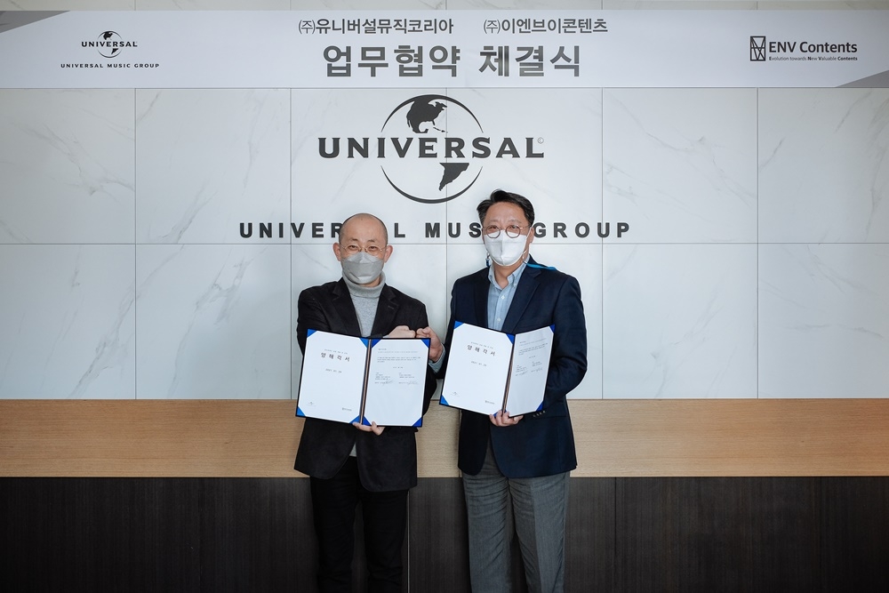 유니버설뮤직은 지난달 29일 ㈜이엔브이콘텐츠와 브랜드·음악 콘텐츠를 기반으로 한 '공간 콘텐츠'를 공동으로 개발하고 운영하는 업무협약(MOU)을 맺었다고 1일 밝혔다.