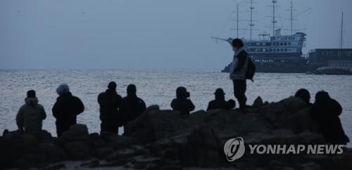 | ▲ 해가 뜨기를 기다리는 관광객 (강릉=연합뉴스) 이해용 기자 = 정부가 코로나19 확산을 막기 위해 일출 명소 등을 전면 통제하기로 한 24일 아침 강원 강릉시 정동진 해변을 찾은 관광객들이 해가 뜨기를 기다리고 있다. |