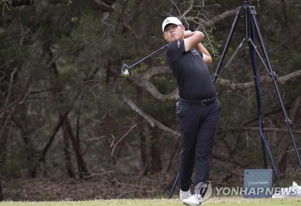 | ▲ In this Associated Press photo, Kim Si-woo of South Korea tees off on the 14th hole during the final round of the Valero Texas Open at TPC San Antonio's Oaks Course in San Antonio, Texas, on April 4, 2021. (Yonhap) |