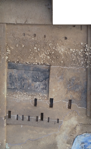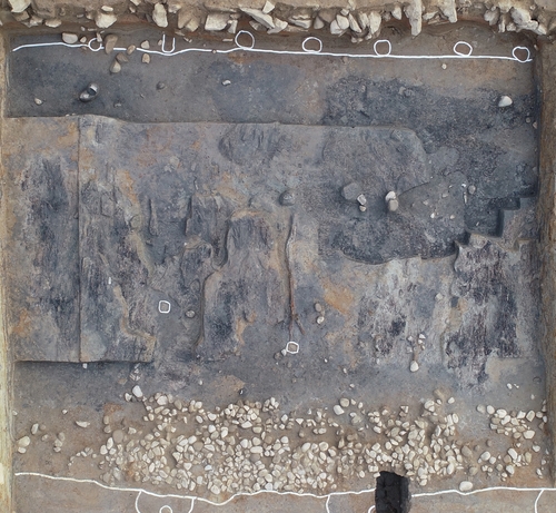 | ▲ 2∼3토루 사이에서 확인된 부석시설 및 목재·나뭇잎층 [국립강화문화재연구소 제공. 재판매 및 DB 금지] |