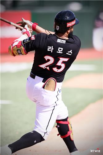SEOUL, April 25 (Yonhap) -- The defending South Korean baseball champions KT Wiz have lost their second slugger to a toe injury this season, with the first-year import Henry Ramos getting his right pinky toe broken by a pitch over the weekend.