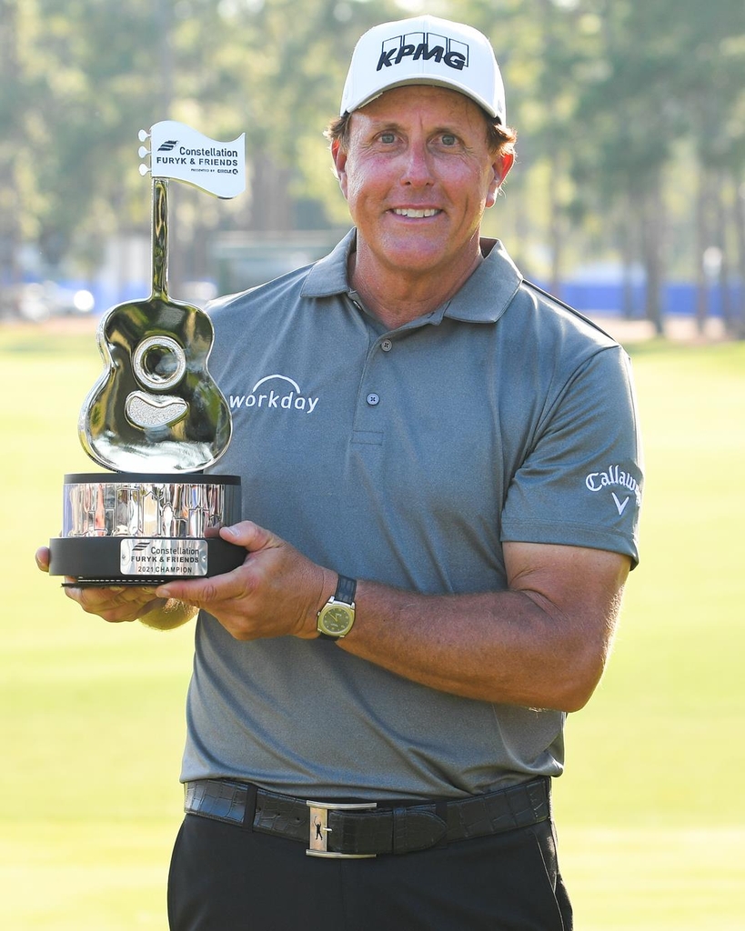 | ▲ 트로피 든 필 미컬슨 [PGA 챔피언스투어 트위터 캡처. 재판매 및 DB 금지] |