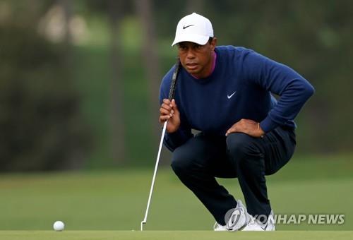 | ▲ 그린 경사를 읽고 있는 타이거 우즈. [AFP/게티이미지=연합뉴스] |