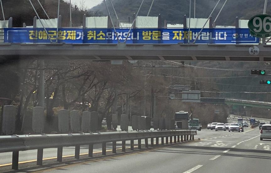 대신 창원시는 양곡로터리, 장복터널 등 진해구 주요 진입도로마다 '군항제가 취소되었으니 방문을 자제 바랍니다'란 현수막을 커다랗게 내걸었다.