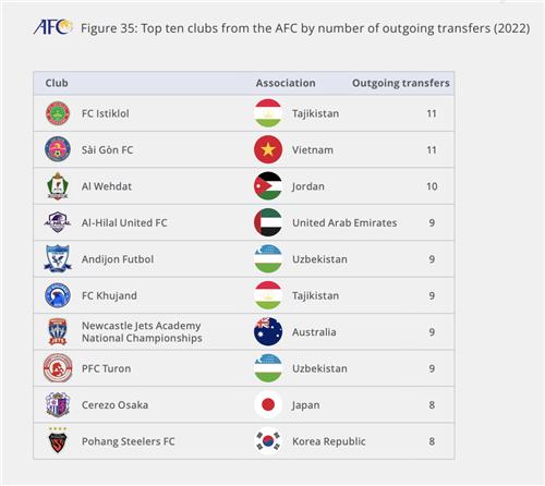 한편, K리그1 포항 스틸러스는 아시아축구연맹(AFC) 가맹국 클럽 중 9번째로 많은 선수를 이적으로 내보낸 구단인 것으로 나타났다.