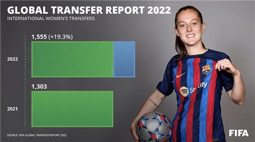 지난해 선수 이적을 단행한 여자 구단은 500곳으로 2021년의 410곳에서 22%나 증가한 수치를 보였다.