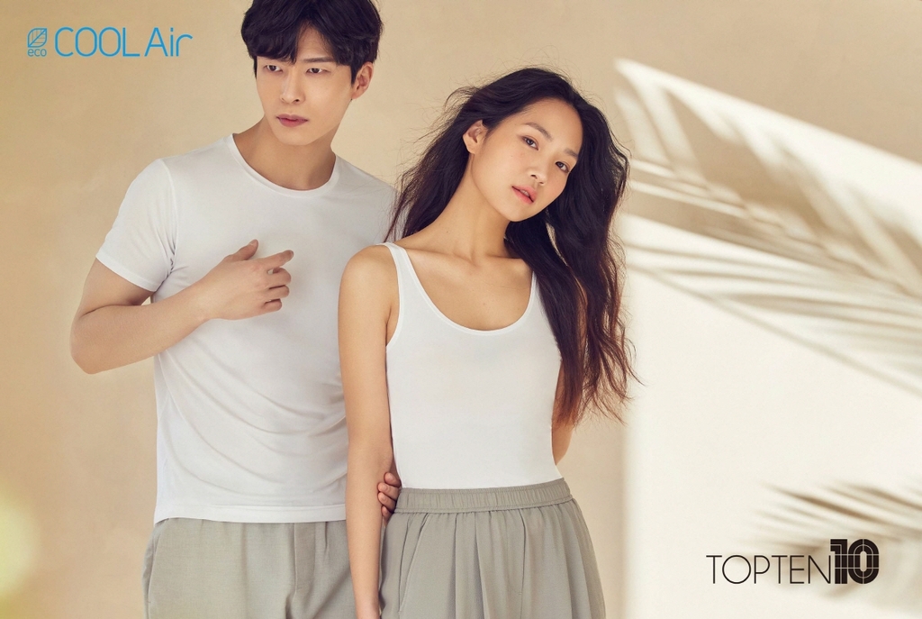 신성통상[005390]의 제조·유통 일괄형(SPA) 브랜드 탑텐은 냉감 소재를 활용한 내의인 쿨에어 라인을 출시했다.