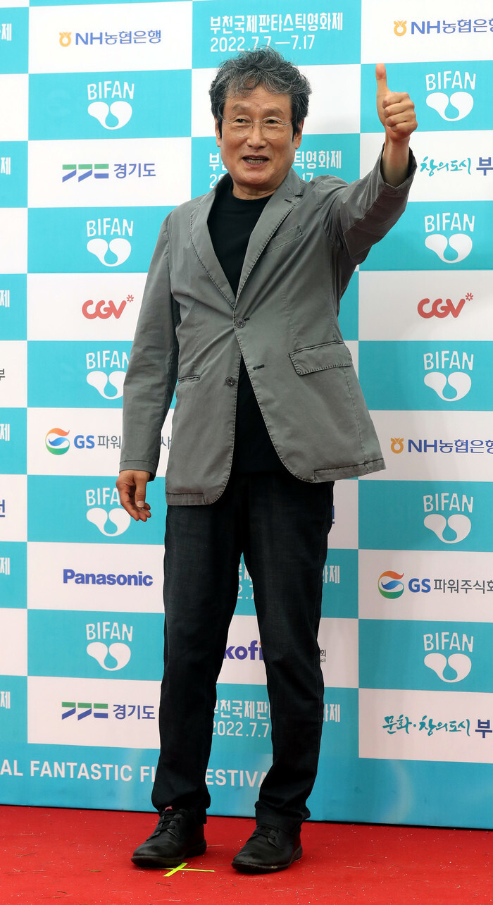 South Korean actor Moon Sung-geun poses for a photo prior to the opening ceremony of the 26th Bucheon International Fantastic Film Festival (BIFAN) in Bucheon, west of Seoul, on July 7, 2022. South Korea's largest annual genre film festival will run till July 17 featuring 268 films from 49 countries. (Yonhap)