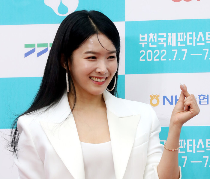 South Korean actress Jo Soo-ha poses for a photo prior to the opening ceremony of the 26th Bucheon International Fantastic Film Festival (BIFAN) in Bucheon, west of Seoul, on July 7, 2022. South Korea's largest annual genre film festival will run till July 17 featuring 268 films from 49 countries. (Yonhap)