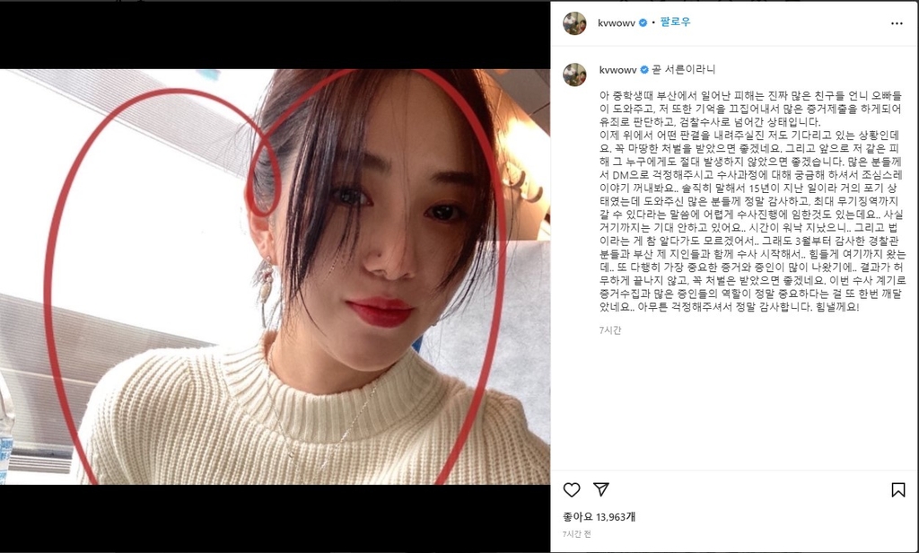 그는 "15년이 지난 일이라 거의 포기 상태였는데 도와주신 많은 분께 정말 감사하고"라며 "결과가 허무하게 끝나지 않고, 꼭 처벌은 받았으면 좋겠네요"라고 썼다.