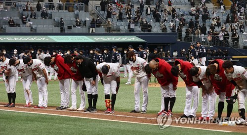 | ▲ KT Wiz players acknowledge their fans after losing to the Doosan Bears 4-1 in Game 2 of the Korea Baseball Organization second-round postseason series at Gocheok Sky Dome in Seoul on Nov. 10, 2020. (Yonhap) |