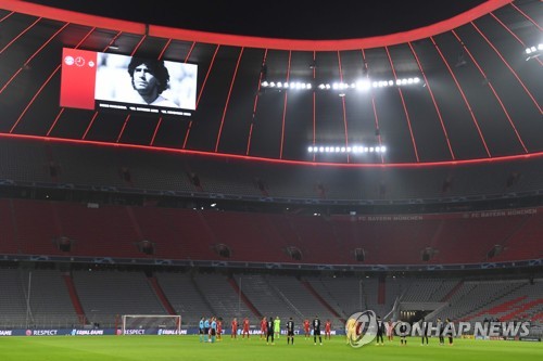 | ▲ 알리안츠 아레나에서 열린 뮌헨-잘츠부르크의 경기 전 마라도나 추모 묵념 [AFP=연합뉴스] |