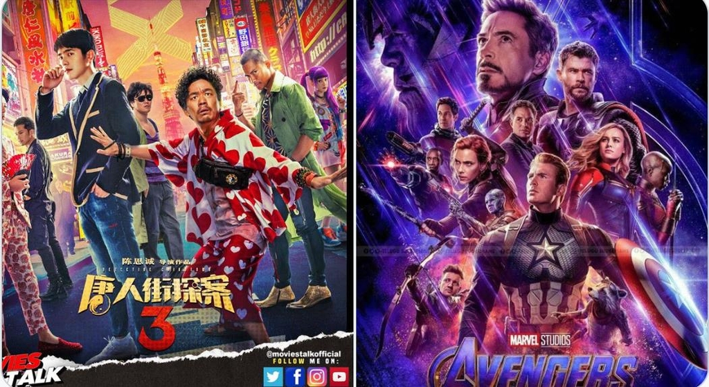| ▲ '디텍티브 차이나타운 3'(왼쪽)와 '어벤져스:엔드게임'(오른쪽) [트위터 게시물 캡처·재판매 및 DB 금지] |