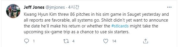 제프 존스 기자는 "기존 로테이션을 따르면 마르티네스가 17일 필라델피아전에 등판해야 하지만, 세인트루이스는 당일 선발 투수를 확정하지 않았다"라며 "(11일 시뮬레이션 피칭을 한) 김광현이 그날 등판하면 다른 선발 투수들에게 하루 더 휴식을 줄 수 있다"고 설명했다.