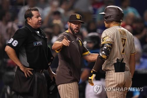 | ▲ 주심에게 항의하는 김하성 [USA투데이스포츠=연합뉴스] |