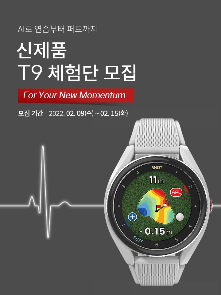 T9은 세계 최초로 '샷&펏 트래킹' 기능이 탑재됐다. 라운드할 때 샷과 퍼트 개수를 자동으로 인식해 제공한다.