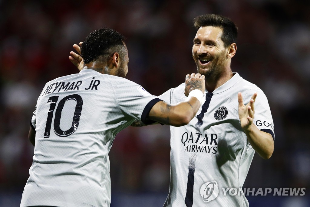 (서울=연합뉴스) 이의진 기자 = 프랑스 프로축구 파리 생제르맹(PSG)의 슈퍼스타 리오넬 메시와 네이마르가 각각 2골 1도움, 1골 3도움으로 맹활약하며 기분 좋은 개막전 대승을 합작했다.