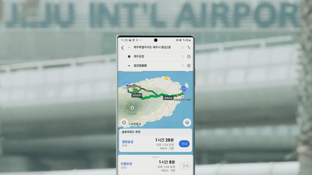 여행객들은 자신이 선택한 경로를 티맵을 통해 안내받을 수 있다.
