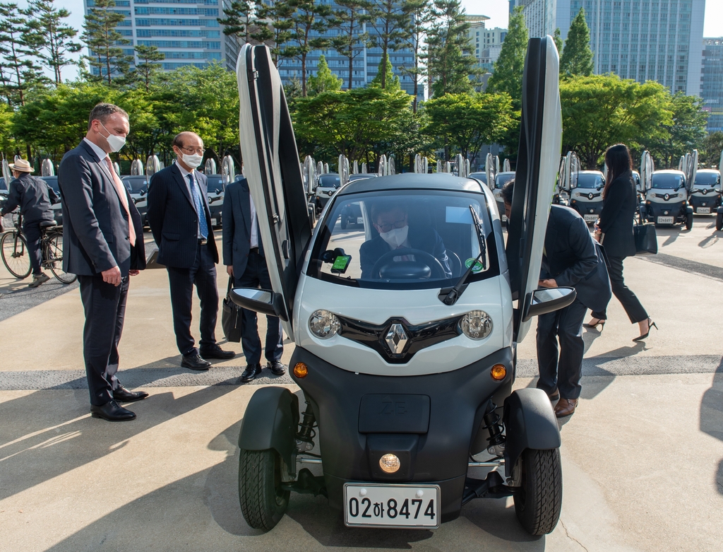르노삼성자동차는 투어지 비즈니스 플랫폼 설계와 운영 컨설팅을 제공했고, 부산시와 부산도시공사는 오시리아 관광단지에 트위지 거점과 충전 인프라를 지원했다.