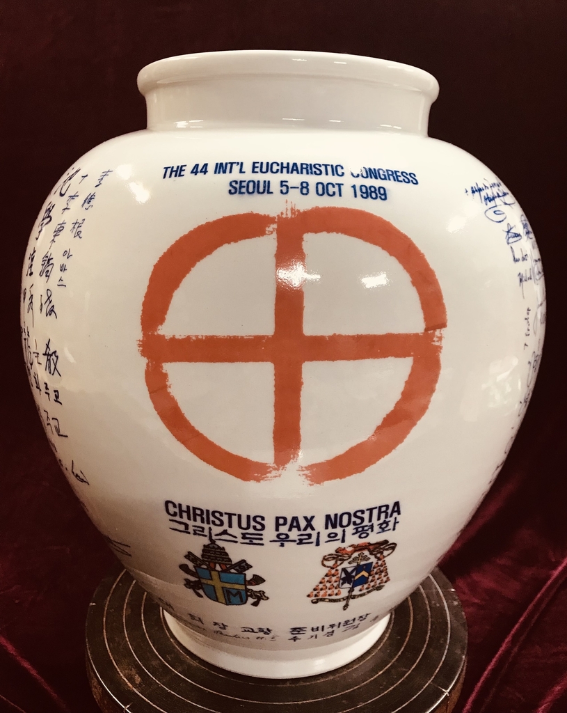 김수환 추기경은 세계성체대회의 성공 개최에 대한 감사 표시로 도자기 1점을 교황 요한 바오로 2세에게 선물했고, 이후 바티칸 박물관에 보관돼 있다.