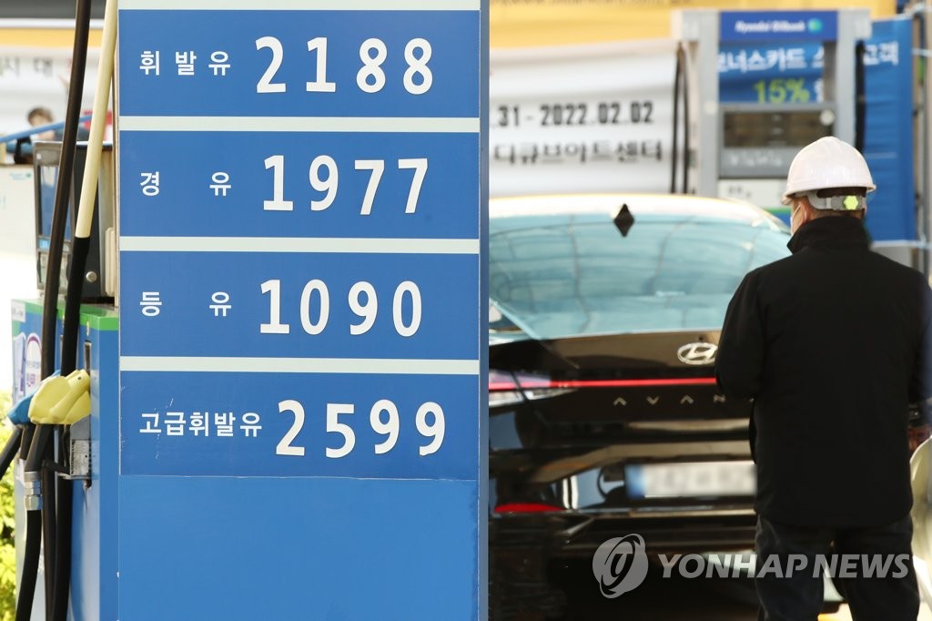 | ▲ This photo, taken Nov. 11, 2021, shows gas prices at a filling station in Seoul. (Yonhap) |