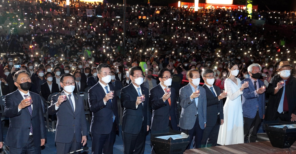 (순천=연합뉴스) 여운창 기자 = 2023 순천만국제정원박람회 개막 1년을 앞두고 성공개최를 염원하는 기념행사가 23일 오후 전남 순천만 달밤 야시장에서 열렸다.