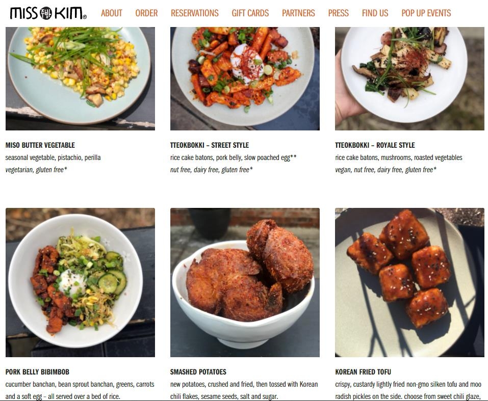 '미스 김' 웹사이트(misskimannarbor.com)에서 김 셰프가 만든 요리와 그간 활동상을 확인할 수 있다.
