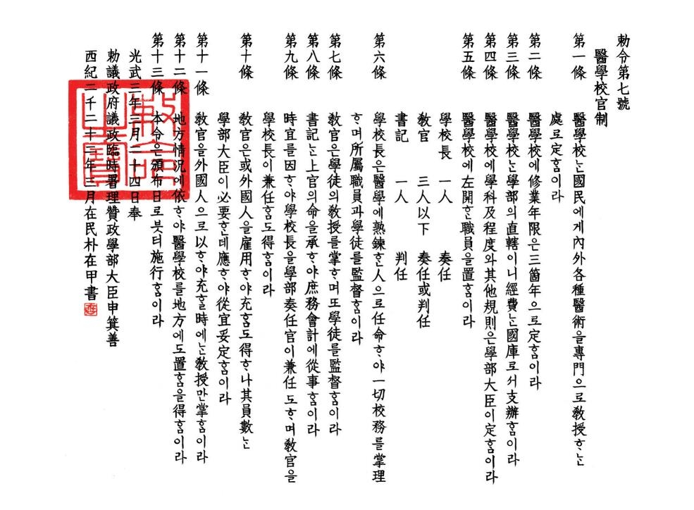 | ▲ 의학교 관제에 관한 칙령 제7호 [박재갑 명예교수 제공. 재판매 및 DB 금지] |