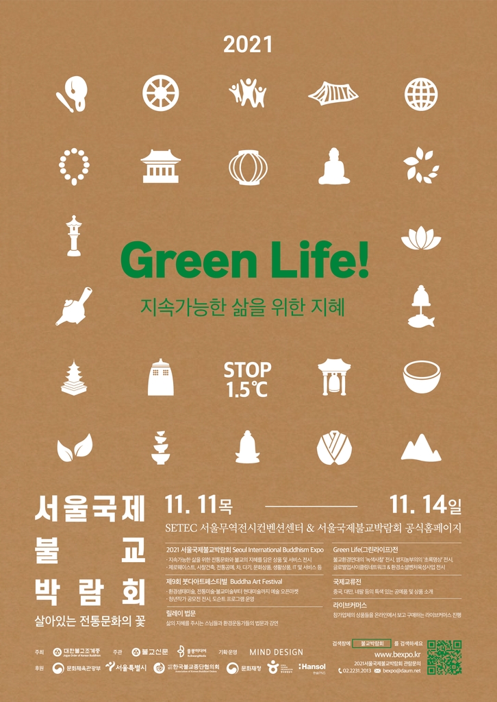 불교계 환경단체인 불교환경연대는 '녹색불교가 미래다' 주제전을 통해 기후위기 시대 녹색 사찰을 꾸려나가는 방법을 제시한다. ▲ 녹색사찰 상담 ▲ 기후위기 알림존 ▲ 자원순환 체험 등 3가지 세션을 선보인다.