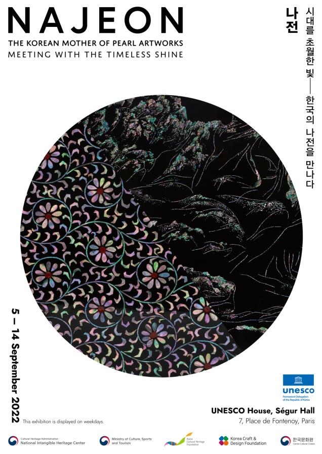 국립무형유산원은 파리 유네스코 본부에서 5일부터 14일까지 열흘간 '나전, 시대를 초월한 빛, 한국의 나전을 만나다' 전시회를 연다고 밝혔다.