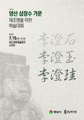 장동표 부산대 교수, 유영옥 동아대 교수, 우정임 부산대 교수, 송지환 경남건축문화재연구원장, 백진재 양산시 학예연구사 등은 삼장수를 배출한 양산 이씨 가문의 역사적 재평가를 중심으로 종합 토론한다.