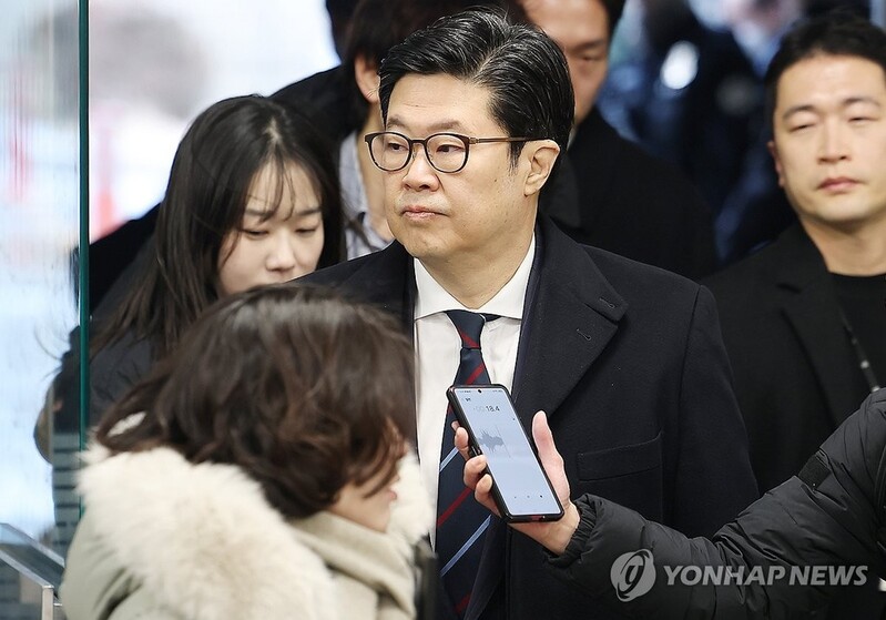 | ▲ Kim Byung-ju, chairman of private equity firm MBK Partners, arrives at the Seoul Central District Court in southern Seoul on Jan. 13, 2026, to attend his arrest warrant hearing. (Yonhap) |
